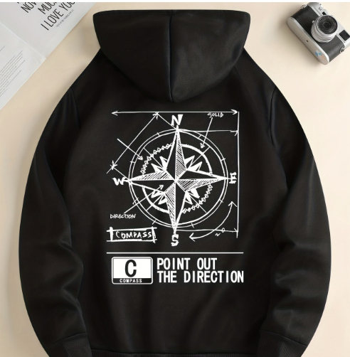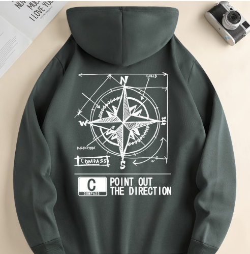 Stay stylish and comfortable with this Fashion Green Compass Pattern Hoodie, designed for casual autumn and winter wear. Made from high-quality polyester, this pullover hoodie features a bold letter-style compass pattern, giving it a unique streetwear vibe.
